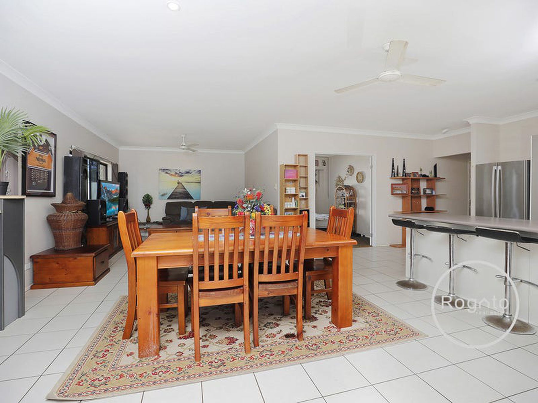 kitchen areas to tiled patio area